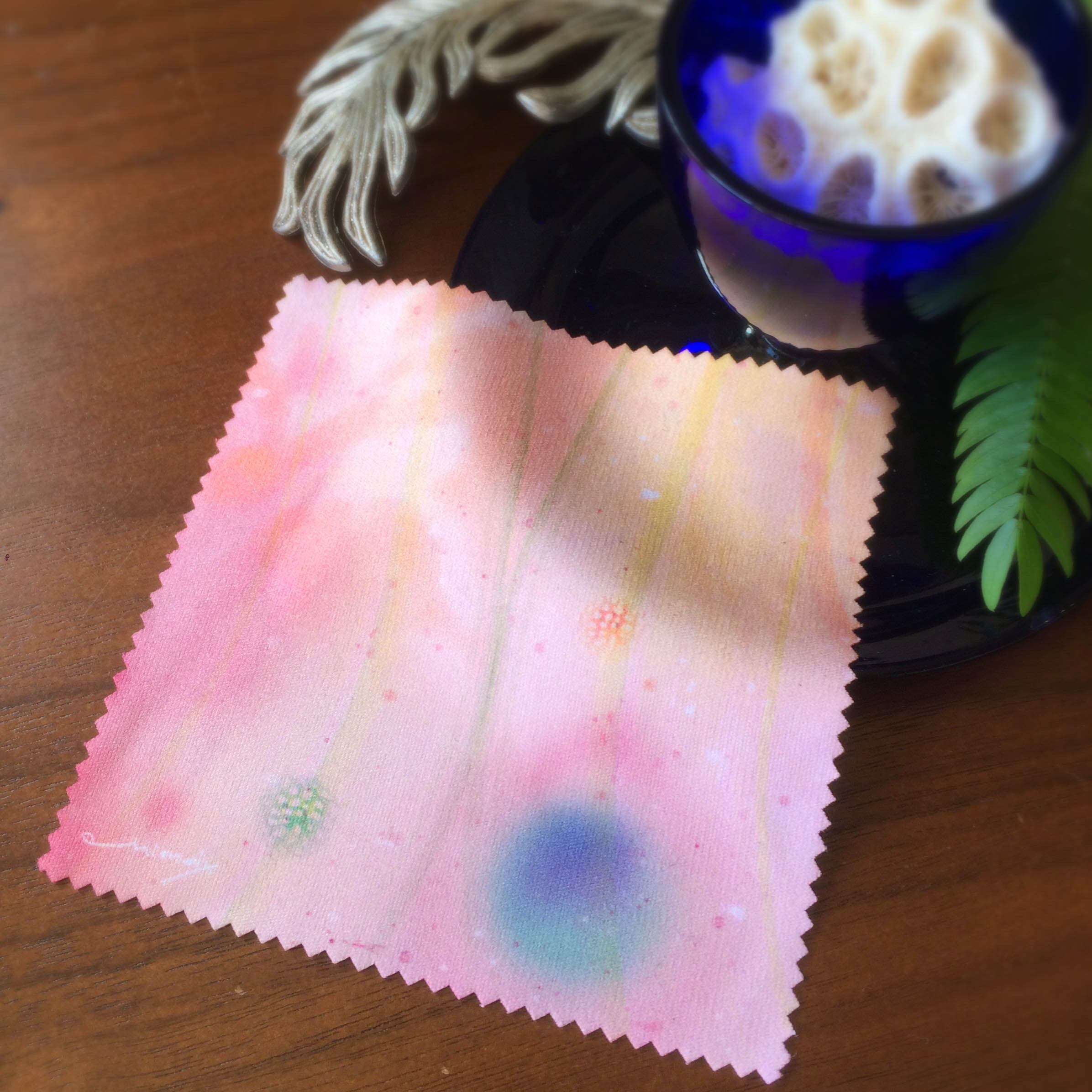 しなやかで幻想的な水彩がシルキーなマテリアルとマッチした美しいマイクロファイバークロス。メガネ拭き・携帯端末の画面拭きとしてはもちろん、外出先でアクセサリーをちょっとくるんでおくのにも。10cm×10cmのコンパクトなサイズ。ちょっとしたお礼やプレゼントにも最適です。洗濯可能。